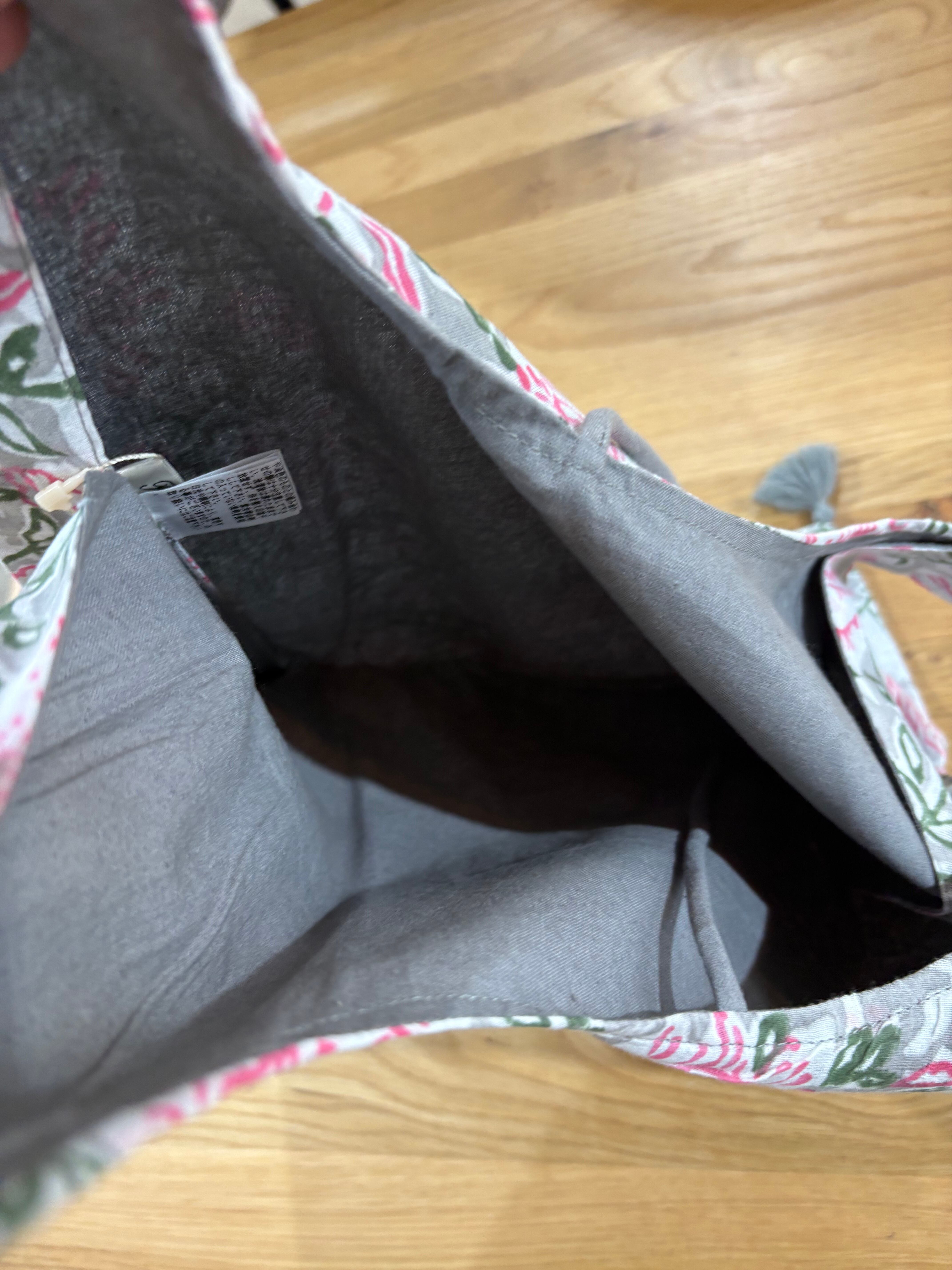 オリジナルのボタニカルブロックプリントのマルシェバッグ