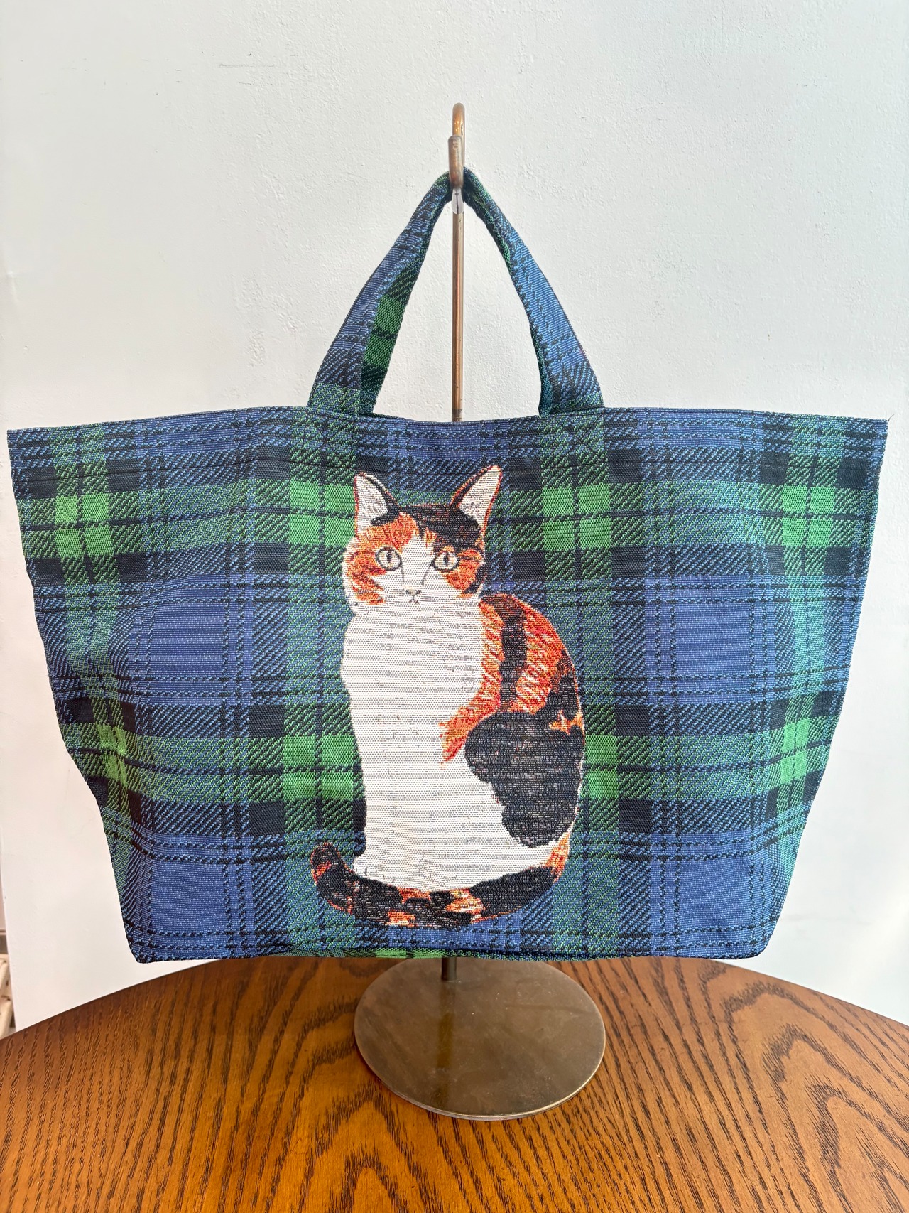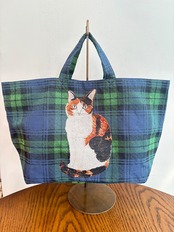 イラストだけでなく、背景のチェック柄もマッチした落ち着いた色合いのアイテム。