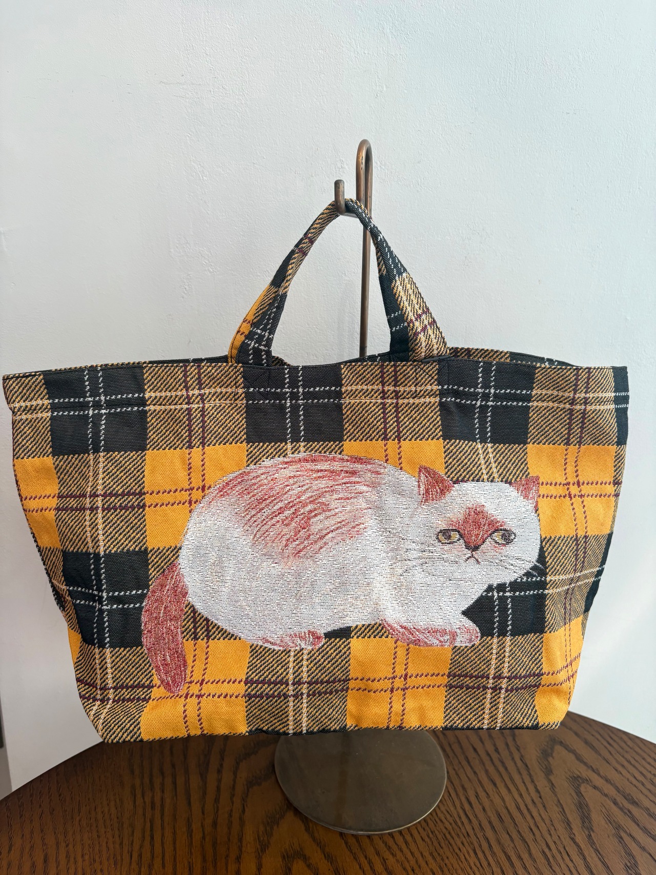 イラストだけでなく、背景のチェック柄もマッチした落ち着いた色合いのアイテム。