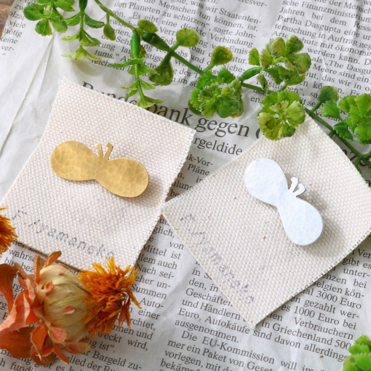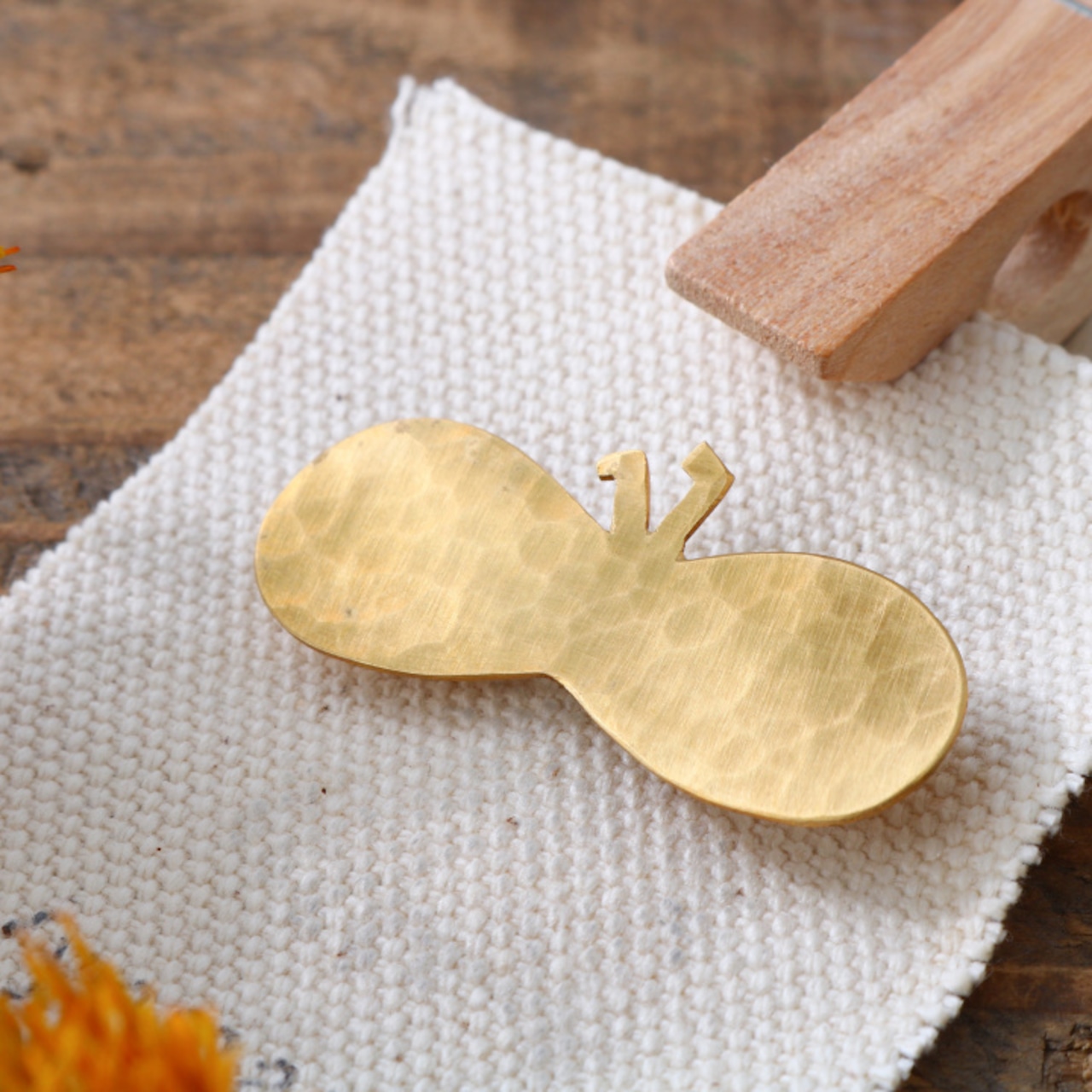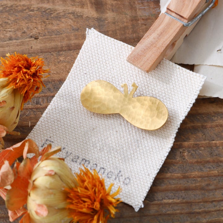 一点一点板から蝶々の形に切り抜き、ハンマーで模様を付けた真鍮のブローチです。