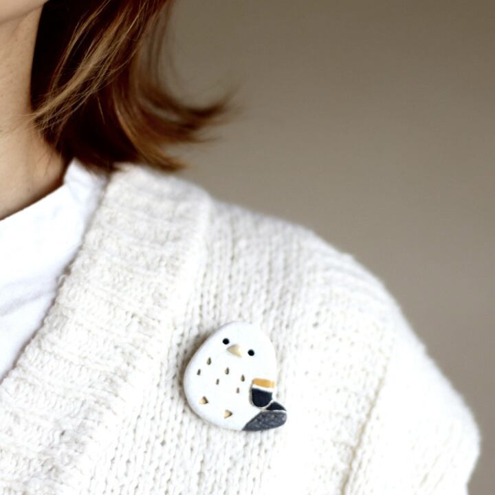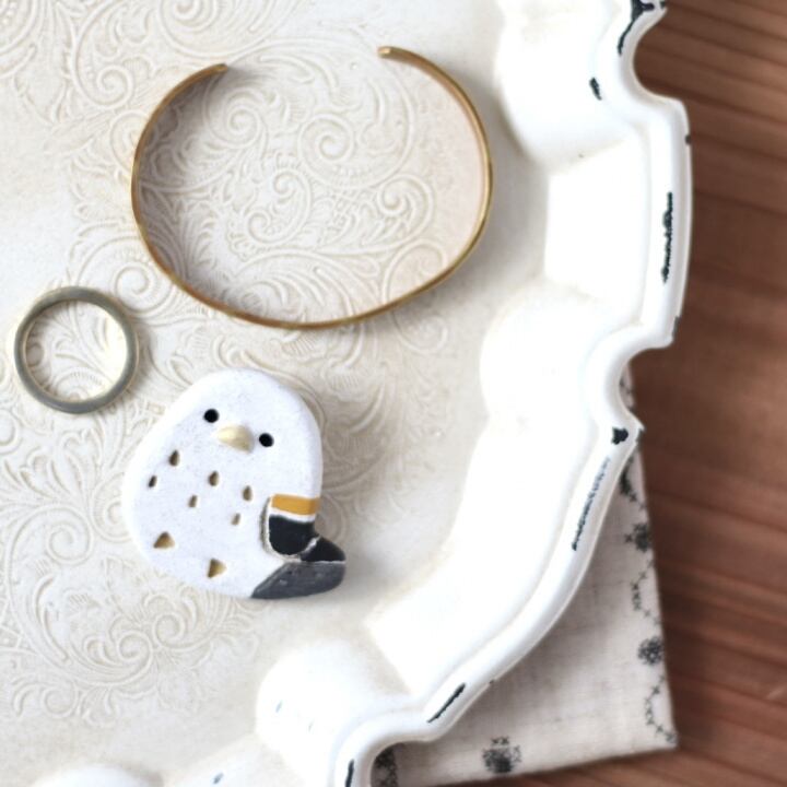 何か物足りないなという時にもおすすめです。ワンポイントになり、ブローチの世界観もお楽しみ頂けます。