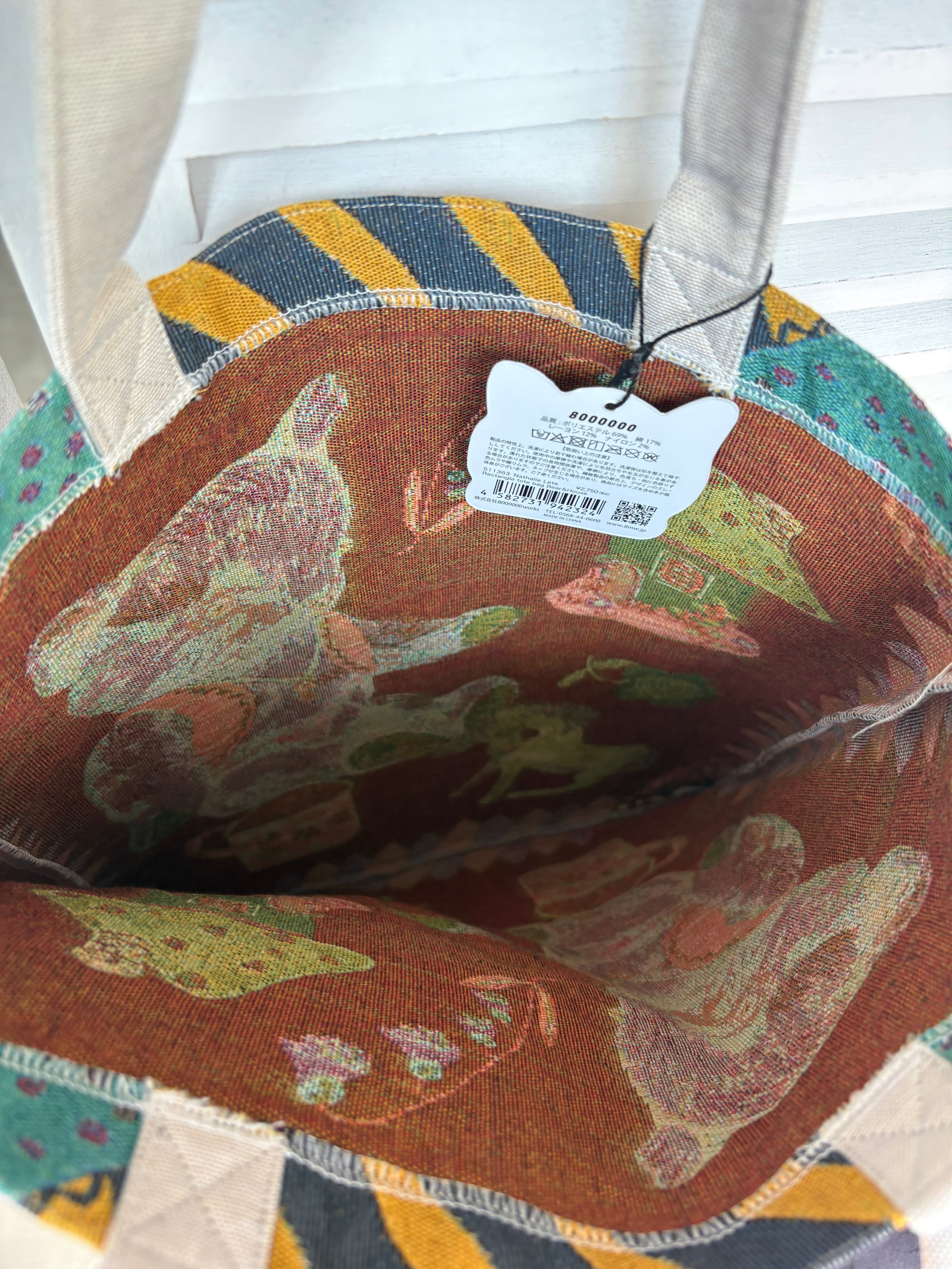 ナタリー・レテが描く、動物や植物たちのユーモラスで不思議な世界を、繊細なゴブラン織りで表現したトートバッグ。