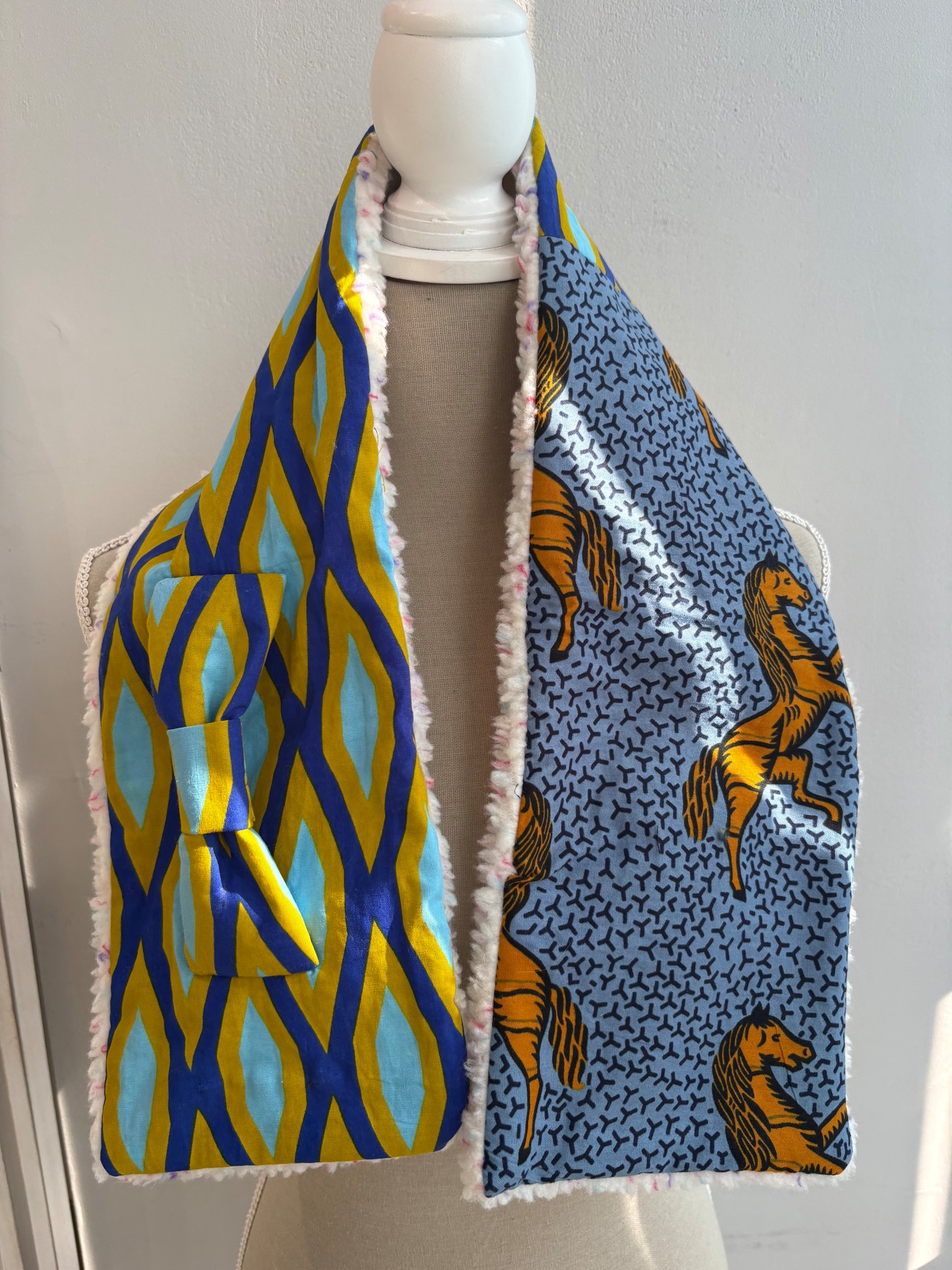 アフリカンファブリックマフラーブルー 作家名MUGIMEKKO