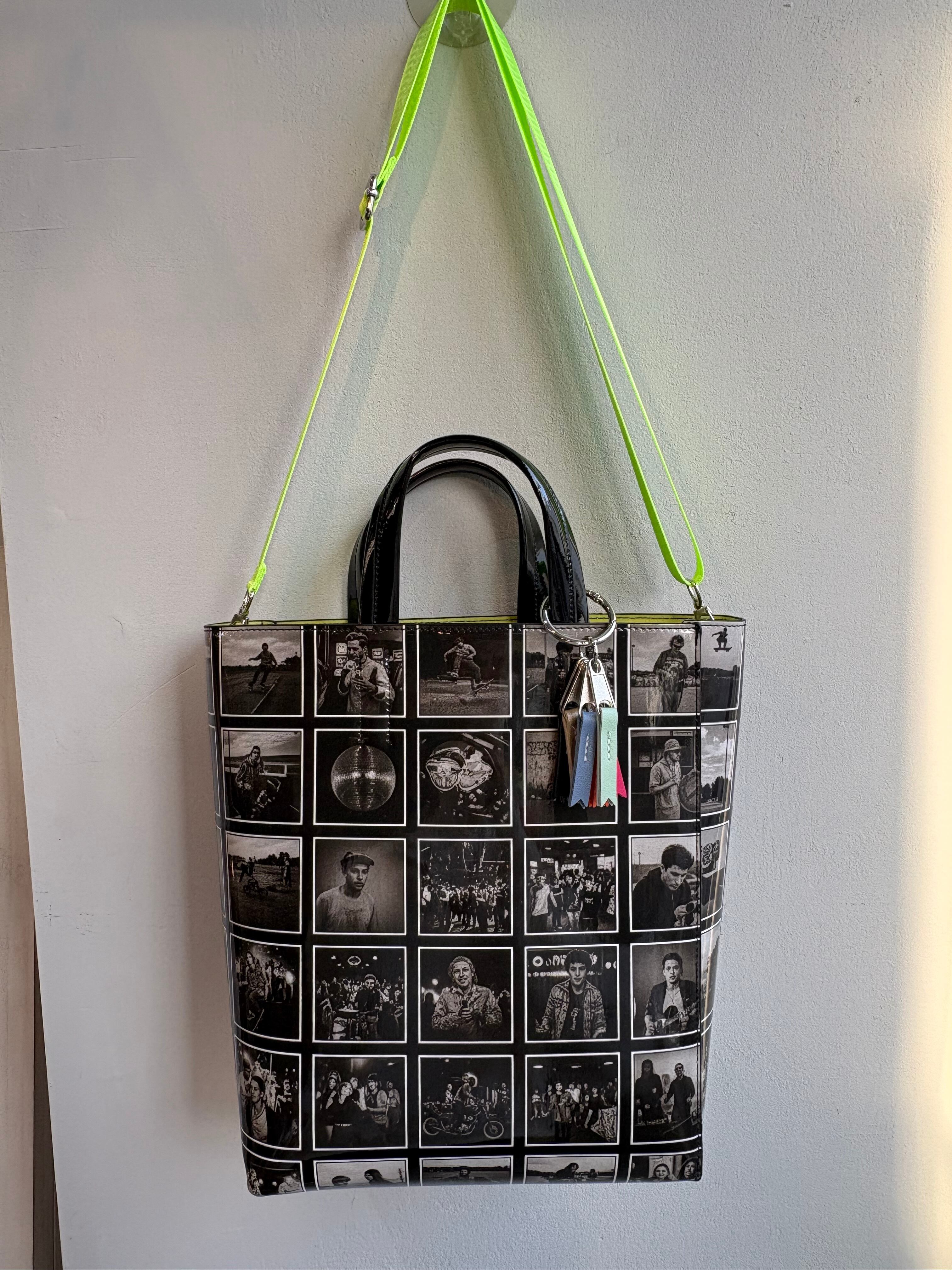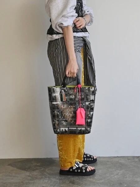● フォットコラージュしたプリントが存在感のあるスクエア型トートバッグ ●