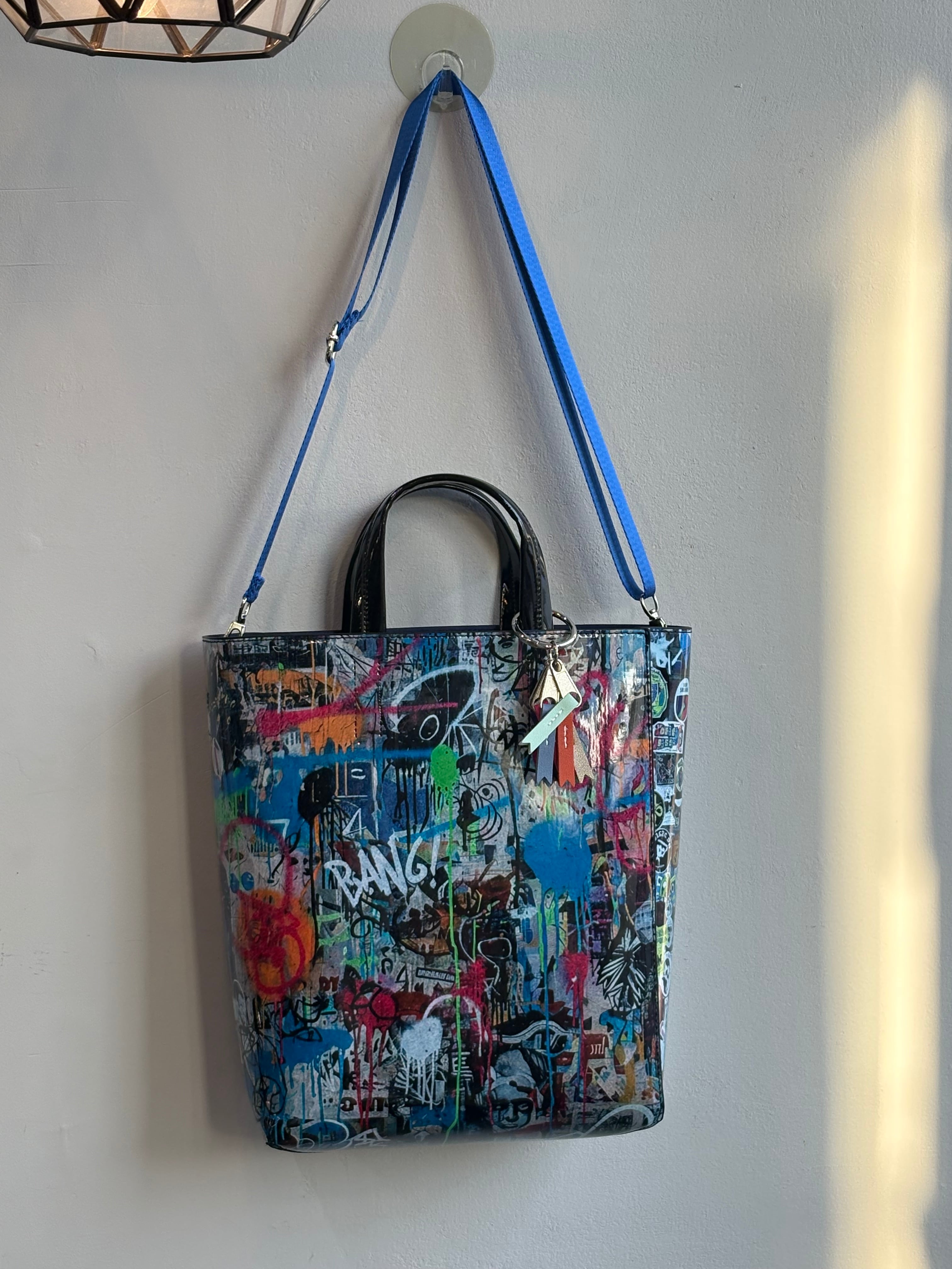 ● フォットコラージュしたプリントが存在感のあるスクエア型トートバッグ ●