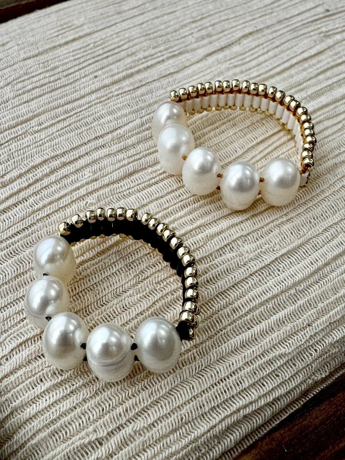 着け心地、肌あたりが良いように、ビーズを一粒ずつ丁寧に、向きを揃えて編んでいます。